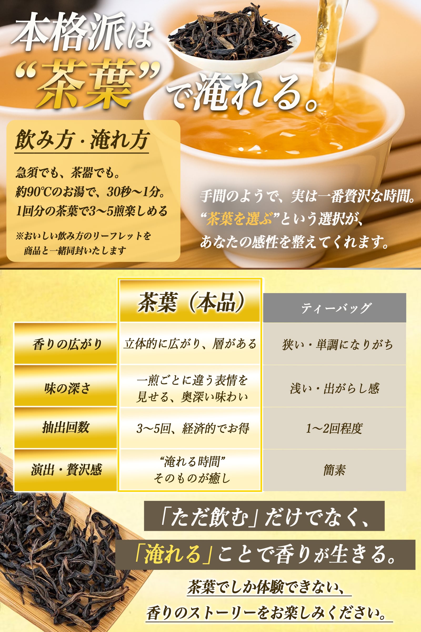 【お茶通も納得の贅沢な味わい】一煎ごとに変化する香りと旨み。お湯を注ぐたびに広がる香りはまるで“飲む香水”。忙しい日常に上質なひと息を。