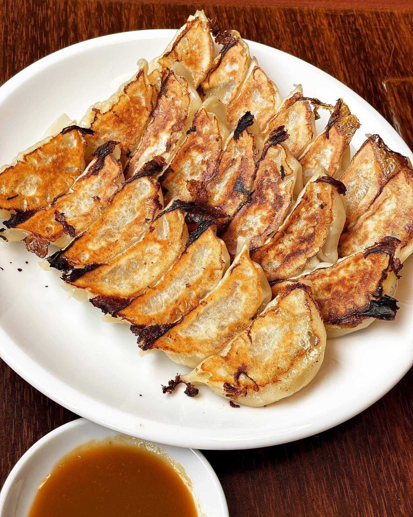 キャベツのザクザク感と豚肉の旨味と甘みを引き出したあっさり仕立ての餃子は、かつおダシをベースに作られた特製の味噌だれと餃子の相性抜群。